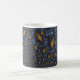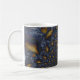 Métal liquide bleu nuit or et argent, motif abstrait fondu.