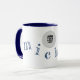 Ajoutez chacune des lettres de votre nom aux modèles pour créer une tasse bleue élégante et personnalisée, avec votre photo spéciale... pour lui ou pour elle.