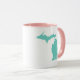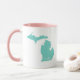 Montrez votre amour pour l'État des Grands Lacs avec cette mug bleu/vert avec "Michigan" écrit en bas; un coeur remplace le deuxième "i" dans "Michigan". Visitez la collection "Michigan" de notre magasin pour plus de produits et d'options de couleurs!