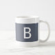 Ultra moderne et minimaliste, cette conception de bloc bleu fumée moyen a une police blanche de base. Personnaliser avec une initiale. Simple et élégant, tout simplement élégant ! Personnalisez-en un aujourd'hui pour votre boisson chaude préférée !