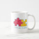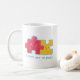 Montrez à quelqu'un de spécial comment ils complètent parfaitement votre puzzle. Cette charmant tasse en céramique blanche présente deux pièces de scie souriantes, une rose vif, une jaune ensoleillée, qui se mélangent au-dessus de la douce phrase "Je t'aime en morceaux".