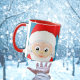 Mignonne Mme Claus portant des lunettes de lecture et un casquette rouge. Personnalisé Joyeuse typographie de Noël pour vous de modifier et de le faire votre propre. Idéal pour la décoration de Noël, un cadeau pour un ami ou un collègue, et pour le chocolat chaud. Joyeux Noël!