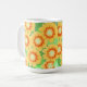 Un motif floral orange vif et jaune avec des feuilles verts nichés autour d'eux.