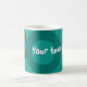 Une tasse personnalisable comportant comportant un chat noir et blanc de bande dessinée portant 2 paires de fait du patin à roulettes, des chaussettes noires et blanches de stripey et un casque de sécurité sur un arrière - plan vert turquoise.