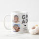 Simple GRAD photo collage graduation tasse de café. Design comprend 4 photos carrés de la grade, des lettres décoratives, un tableau de mortier, nom, lieu d'étude et année de classe. Grand cadeau de gardien pour la grade!