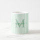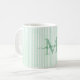 Commencez votre matinée avec style avec cette tasse à café verte rayée personnalisée, conçue pour apporter un charme intemporel à chaque gorgée. Avec un fond rayé vert clair et blanc, cette tasse élégante est personnalisée avec votre initiale de monogramme et votre nom complet dans une police de caractères cursive élégante, créant un look féminin et raffiné à la fois classique et moderne.