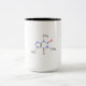 Mug of coffee with the drawing of the molecule of the caffeine.