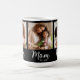 Being a mom is one of the most important jobs in the world. Show your favorite mom that you care with this custom 3 photo coffee mug. Simple white script calligraphy and sans serif typography, along with your 3 personalized photos, overlay a black background. Personalize with the photos of your choice and the mom “established” year date when your first child was born. Add additional years for each child. And switch out “mom”, if desired, for however you call your mom or mum.