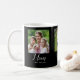Celebrate motherhood in style with this Mom Established photo coffee mug, featuring elegant white script and space for three personalized photos. A heartfelt and practical gift for moms, this custom coffee mug is perfect for everyday use.