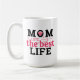 Toot motherhood with this "Mom Life Is The Best Life" cute coffee mug, ideal Mother's Day gift for mom, mom birthday gift, or just because gift. Featuring bold black and pink words with different shapes and sizes of hearts, this gift for her is an excellent personalized mom gift.