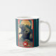 Start the day out something fierce with your favorite beverage while using this cool, striking, unique, custom monogram name coffee mug. A retro vintage, green blue lizard monster appears over a Japanese landscape with mountains, pagoda, a fan sun and your monogram initial. The background sports teal blue stripes along with your name. Add your personal initial. Personalize with your name and initial. Makes a fun and bold statement every time you use it. Makes a great gift for someone special, even yourself!