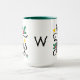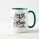 Personalized JOY IN JESUS Christian Christmas mug with CUSTOMIZABLE MONOGRAM, bold black script typography and holly. Ideal personalized drinkware during the festive season, with a strong Christmas message of joy in Jesus all year round. You can PERSONALIZE with your monogram or initial at the center. Matching gifts available.