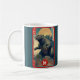 Start the day out something fierce with your favorite beverage while using this cool, striking, unique, custom monogram name coffee mug. A retro vintage, green blue lizard monster appears over a landscape with mountains, pagoda, a fan sun and your monogram initial. The background sports teal blue stripes along with your name. Add your personal initial. Personalize with your name and initial. Makes a fun and bold statement every time you use it. Makes a great gift for someone special, even yourself!