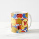 Très impressionnant et séduisant, ce design de softball monogramme présente un arrière - plan rouge et bleu avec des gants, des boules douces et des chauves-souris. Présentez-vous sur votre bureau au travail ou gardez-vous dans votre cuisine pour une tasse de café chaude. Achetez votre tasse aujourd'hui ! Oeuvre créée par : AMBillustrations http://www.etsy.com/shop/AMBillustrations/