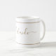 Monogramme blanc or moderne Chic Girly Script Nom Mug café. Personnalisez cette élégante tasse monogrammée d'or et de blanc avec votre nom dans une simple typographie de script classique. Un cadeau parfait pour elle, un cadeau de décoration de bureau, un cadeau d'affaires ou une idée de retour à l'école.