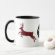 Tasse à thème de vacances cabine rustique avec des graphiques de deux cerfs réalisés dans le style de buffle rouge et noir plaid. Personnalisez le monogramme d'une lettre blanche, sur le cercle noir, pour répondre à vos besoins. #holiday