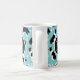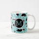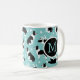 De mignons colons aux bords noirs et blancs s'assoient, se tiennent et se reposent avec des empreintes de pattes épars sur un arrière - plan bleu avec votre propre monogramme personnalisé.