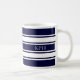 Mug de café monogramme de la marine nautique et de la bande blanche