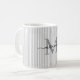 Commencez votre matinée avec style avec cette tasse à café grise rayée personnalisée, conçue pour apporter un charme intemporel à chaque gorgée. Avec un fond rayé gris clair et blanc, cette tasse élégante est personnalisée avec votre initiale de monogramme et votre nom complet dans une police de caractères cursive élégante - créant un look féminin et raffiné qui se sent à la fois classique et moderne.