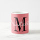 Classy coral rose et blanc nom personnalisé monogramme Coffee Mug. Concevez vos propres tasses personnalisées. Élégant monogrammed nom design initial. Modèle de typographie élégant avec texte de script. Chic idée cadeau d'anniversaire ou de Noël pour les amis, la famille, le collègue, le patron, l'enseignant, l'entraîneur, collègue, employé etc. Couleurs personnalisables. Faites votre propre tasse unique pour la maison ou le bureau.