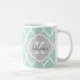 Mug Monogramme de Quatrefoil marocain à la menthe et g