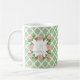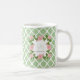 Mug Monogramme de rose de rose de Quatrefoil de vert