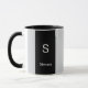 Un monogramme minimaliste avec une bande noire au centre avec un monogramme et votre nom ci-dessous. Le cadeau ou accessoire parfaitement personnalisé !