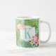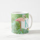 Mug Monogramme Flamant rose tropical et fleurs d'Hibis