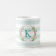 Ce joli design de poule est orné d'un arrière - plan rayé blanc et menthe avec une couronne fleurie colorée. Personnalisez la conception avec votre monogramme initial ou autre texte. Utilisez les outils de conception pour choisir des couleurs arrière - plans, modifier les polices de texte et les couleurs ou télécharger vos propres photos pour créer une tasse à café monogrammée unique.