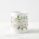 Tasses à café personnalisées personnalisées avec votre nom monogramme ou autre texte personnalisé. Le design présente une aquarelle féminine blanc illustration florale bordant votre texte dans un cadre doré et blanc. Utilisez les outils de conception pour choisir une couleur arrière - plan, modifier les polices de texte et les couleurs et ajouter vos propres photos pour créer un cadeau unique.