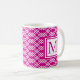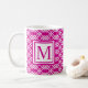 Cette tasse à café moderne et branchée présente un design en treillis géométrique blanc et un arrière - plan rose framboise. Au centre se trouve une lettre monogramme encadrée de la même couleur framboise. Cette tasse fait le cadeau parfait pour cette personne sophistiquée qui a tout.