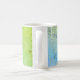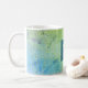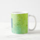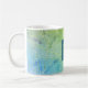 Cette tasse à café offre un design élégant en turquoise et vert et est accentuée de lignes géométriques de parties scintillant en faux vert clair. Une boîte turquoise foncée, au centre, offre un monogramme personnalisé.