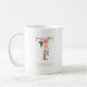 Mug Monogramme Lettre Or T | Floral Rose Blanc Vert