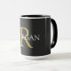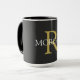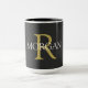 Personnalisez ce Mug à café noir avec votre monogramme et votre nom. Ce design classique simple en or et texte blanc peut également être utilisé pour un nom d'entreprise et un site web.
