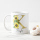 Marquage en or monogramme avec mug initial tournesol, cadeau de Noël ou d'anniversaire idéal pour une fille, maman, tante ou sœur. Personnalisé avec le monogramme de la lettre K et un nom. Autres lettres disponibles dans ma boutique.