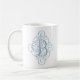Tasse à café bleue personnalisée monogramme ornemental