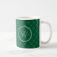Elégant cadeau de vacances d'hiver, motif plaid vert foncé, cadre rond monogramme personnalisé, carreaux vert de Noël