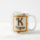Cette tasse de thé ou de café monogramme du matin est une excellente façon d'ajouter une touche colorée à votre routine matinale. Une élégante motif rose et rouge étoile s'impose face à un arrière - plan beige. La lettre "K" est présentée dans un carré avec le nom de famille des deux côtés de cette tasse. La lettre et votre nom peuvent rapidement et facilement être personnalisés. Design original - C. McGouldrick