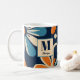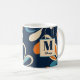 Monogramme rétro milieu du siècle 70ies turquoise marine bleu marguerite vintage moderne style rétro nom personnalisé tasse de café demoiselle cadeaux fête de mariée faveurs