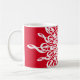 Des tasses à café musicales uniques pour les musiciens et les mélomanes pour les vacances d'hiver. La fonte de g-clés blanches forme un flocon de neige fait à partir de notes de clef de treble. Utilisez le modèle de texte pour ajouter une initiale ou un monogramme au milieu de la conception ornementale. Modifiez pour changer l'arrière - plan rouge de Noël, la bordure du cercle central et la police élégante de style ancien en toute couleur que vous souhaitez. ♡ Idyllfire
