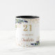 Pour une soirée d'anniversaire élégante de 21e (ou tout âge). Un arrière - plan blanc. Sur le devant et le dos : Personnalisez et ajoutez un nom, un âge et une date. Décoré avec de la végétation d'eucalyptus et de la poussière de parties scintillant imitation.