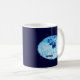 Image bleue et blanche d'un orignal de vache en milieu urbain en hiver. Le texte personnalisable "Alaska" apparaît également. Vous pouvez ajouter du texte supplémentaire à l'envers. Les orignaux sont des résidents de nombreuses collectivités de l'Alaska qui vivent toute l'année. Ici à Anchorage il y a environ 1500 animaux, ainsi que des loups, des ours bruns et d'autres animaux sauvages.Ils sont généralement bien élevés. Ils traversent souvent les rues aux passages piétons après avoir attendu un signal de marche.