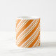 Mugs à rayures de nuances orange et blanc pour les fêtes.
