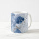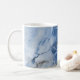 Un mug dans des couleurs d'encre liquide marbre bleu foncé, blanc et bleu clair. Le design est un design rêveur romantique et élégant avec des traces dorées et argentées comme la brise marine côtière scintille. Il ressemble à une texture de pierre de marbre abstraite et à de la lave fluide en même temps. Ce design convient parfaitement aux maisons côtières et fait entrer la brise dans votre pièce.