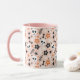 Ce design se compose d'un motif fantaisiste et ludique avec un arrière - plan rose doux. Les crânes caricaturaux sont mignons, éparpillés dans le dessin, avec de grandes prises creuses pour les yeux, ce qui leur donne une atmosphère amicale et non menaçante.