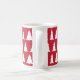 La tasse festive présente un motif d'arbre géométrique blanc sur un arrière - plan rouge. Autres tasses de style disponibles dans la barre latérale. Pour voir le design moderne White Trees on Red Christmas Motif sur d'autres articles, cliquez sur le lien de collection "Rocklawn Arts". Copyright ©Claire E. Skinner. Tous droits réservés.