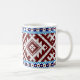 Tasse à café avec motif estonien de cueillette tressé de Järva-Jaani, Järvamaa, Estonie. Les ceintures tissées aux motifs exquis font partie intégrante de la tenue folklorique estonienne depuis des siècles. La ceinture était utilisée pour soutenir le dos, tandis que les motifs eux-mêmes apportaient de la chance et protégeaient le porteur. Le tissage en cueillette fait partie de notre patrimoine culturel.