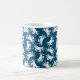 Crabes blancs sur arrière - plan bleu sur Mug de café. Motif répétitif sans couture pour les amateurs de vies marines.
