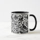 Mug in a William Morris, papier peint Art Nouveau design de faisans et lièvres sertis entre feuilles, vignes et fleurs - Noir sur un arrière - plan blanc à texture subtile