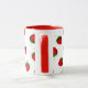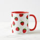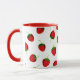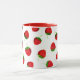 Tasse de café dans un motif éparpillé de fraises rouges mûres sur un arrière - plan blanc